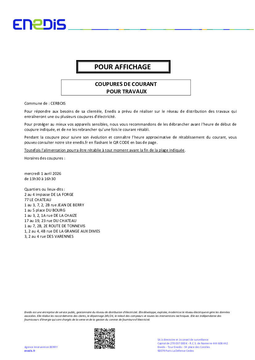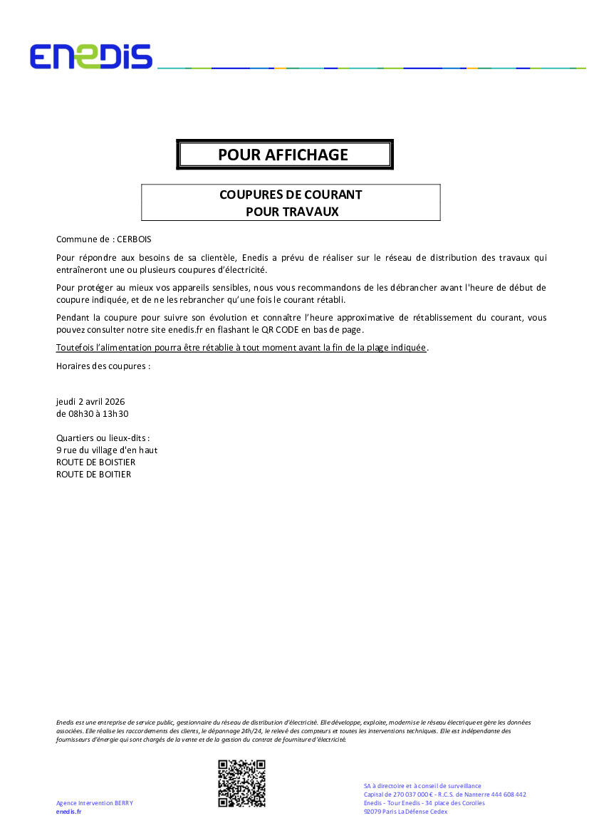 COUPURE ÉLECTRIQUE 02/04/2026 8h00-14h00