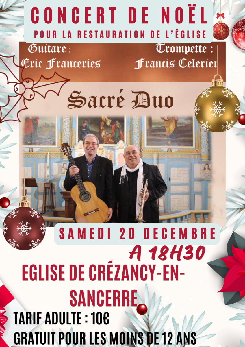 ❄🎄Concert de Noël ❄🎄 15/12/2025 Samedi 20 décembre à 18h30 à l'église de Crézancy-en-Sancerre Source : Mairie de Crézancy-en-Sancerre