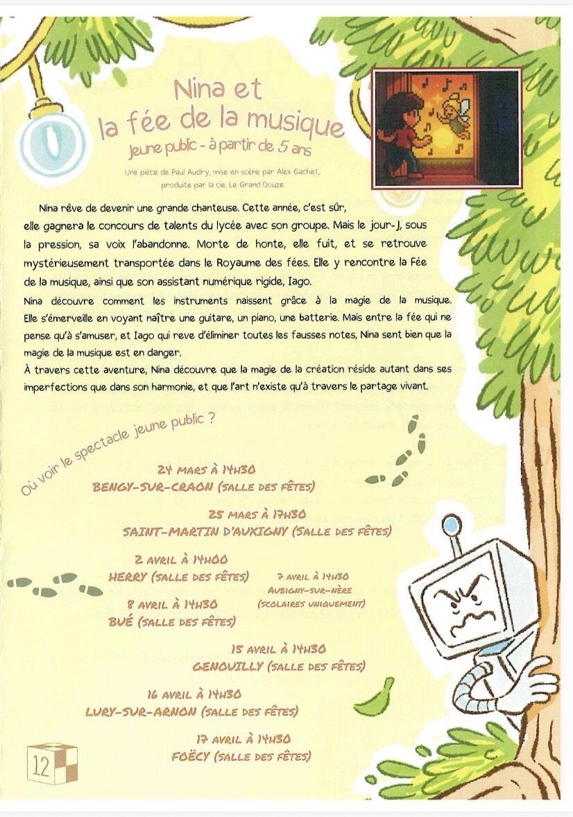 - 2 avril à 14h00 « Nina et la fée de la musique » Jeune public - à partir de 5 ans)