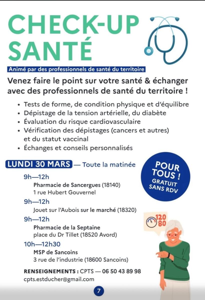 1⃣ Check-up santé lundi 30 de 9 h à 12 h