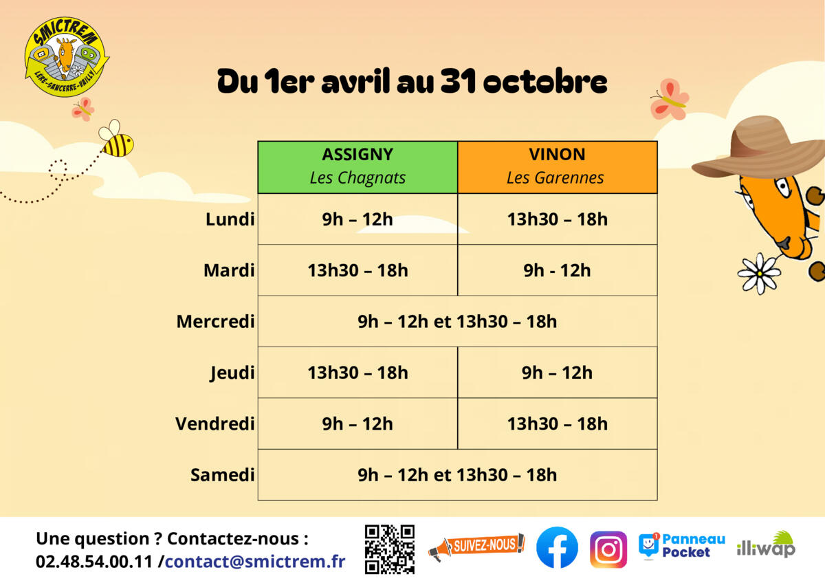 HORAIRES DECHETERIES