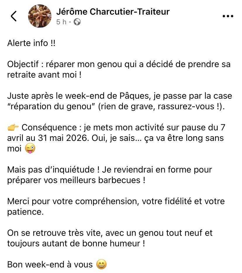 Info CHARCUTIER TRAITEUR - les Jeudis place de la Mairie