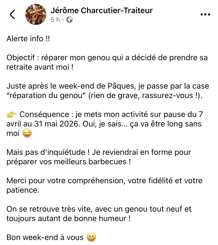 / Info CHARCUTIER TRAITEUR - les Jeudis place de la Mairie