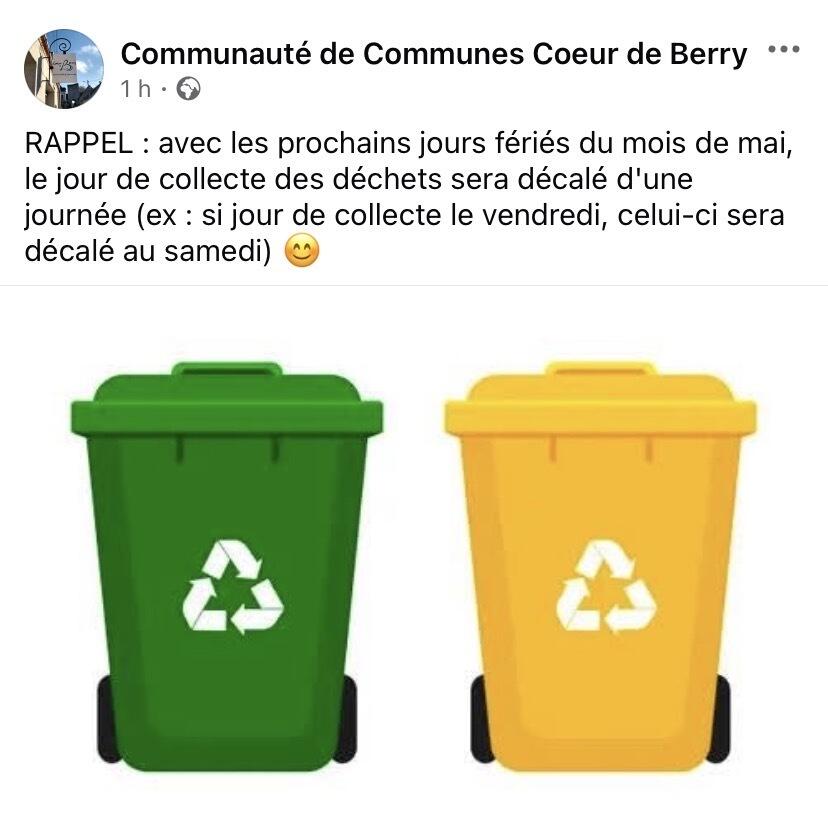 / Passages - collectés déchets - jours fériés
