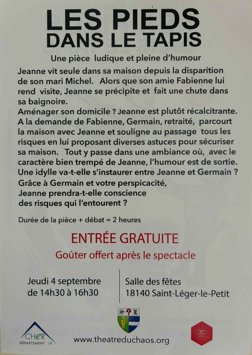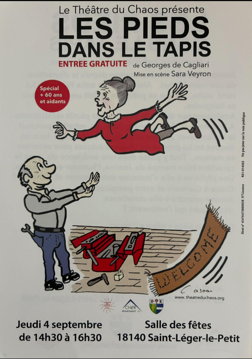 Ce même jour, la compagnie le Théâtre du Chaos vous propose leur pièce de théâtre « Les pieds dans le tapis » de 14h30 à 16h30.
