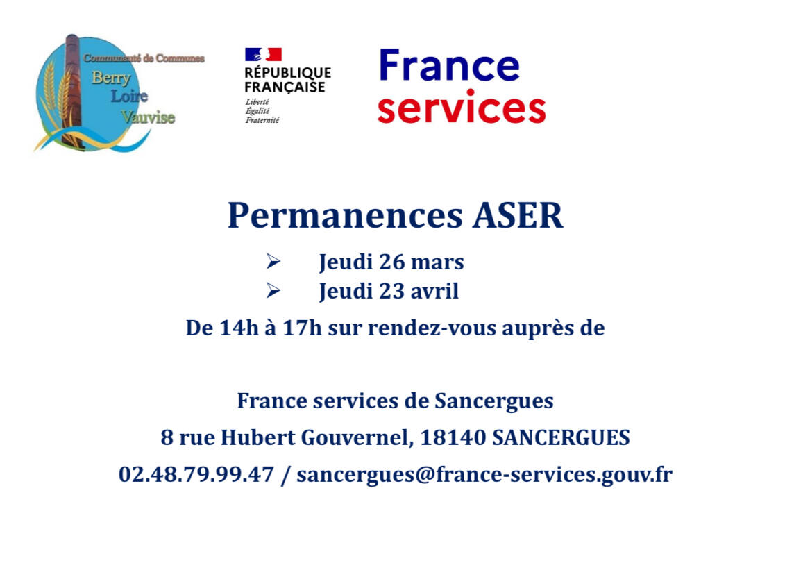 La Maison France Service de Sancergues vois informe des différentes permanences qui auront lieu dans leurs locaux.