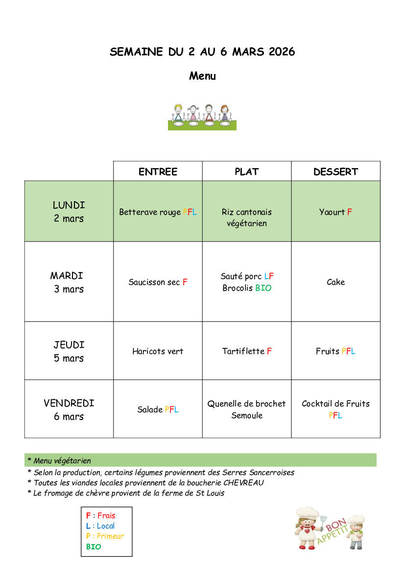 Accueil / Actualités / Menu du 2 au 6 mars 2026