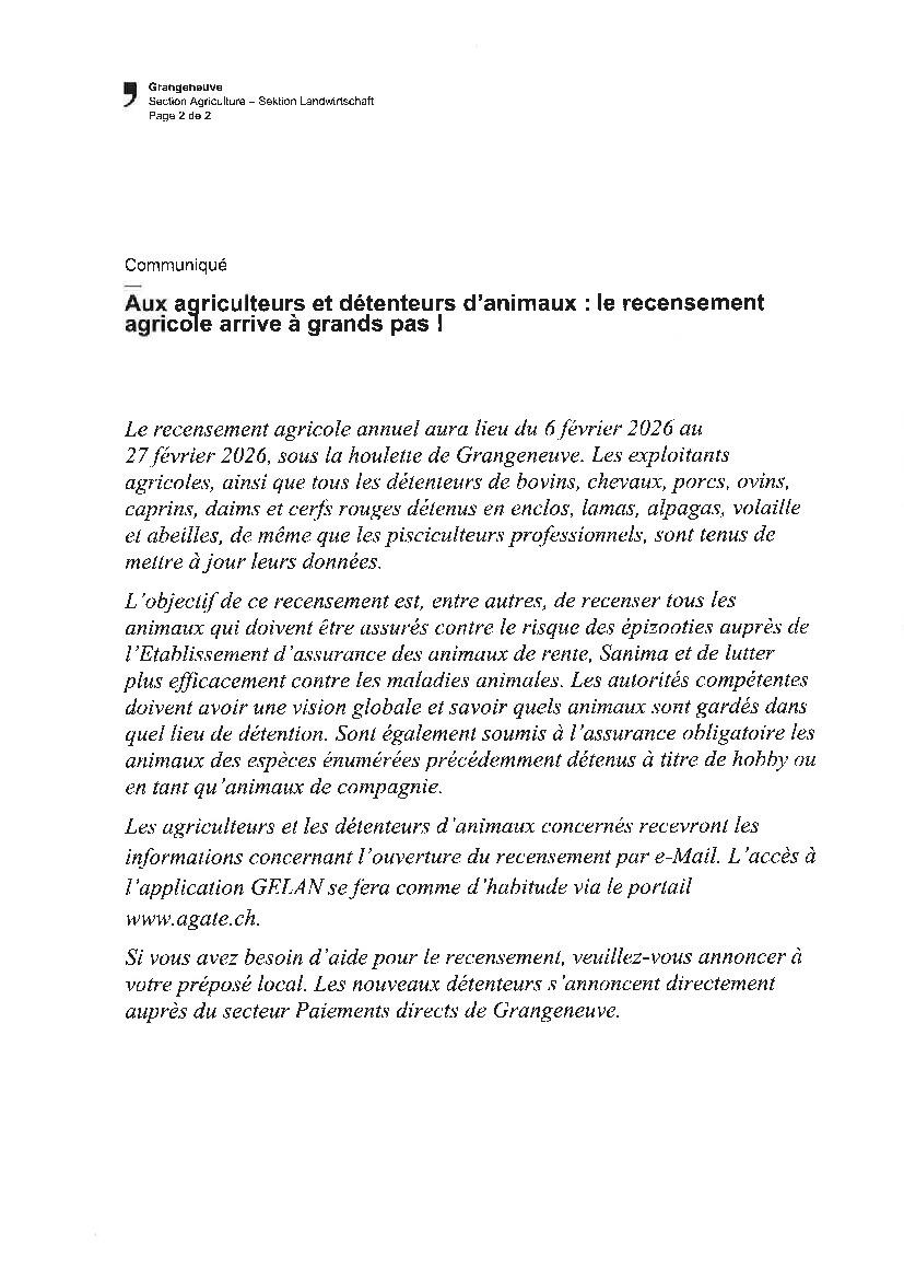 Avis aux agriculteurs et détenteurs d'animaux : recensement