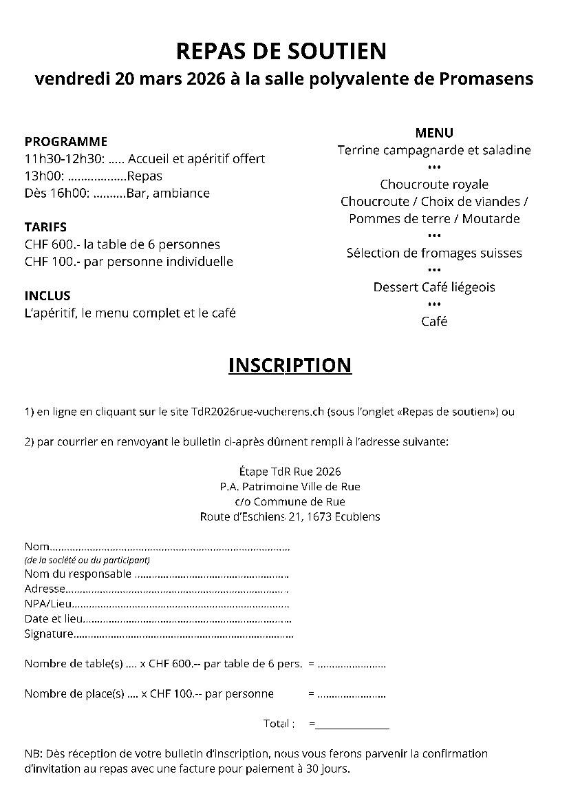 Tour de Romandie, repas de soutien sur INSCRIPTION