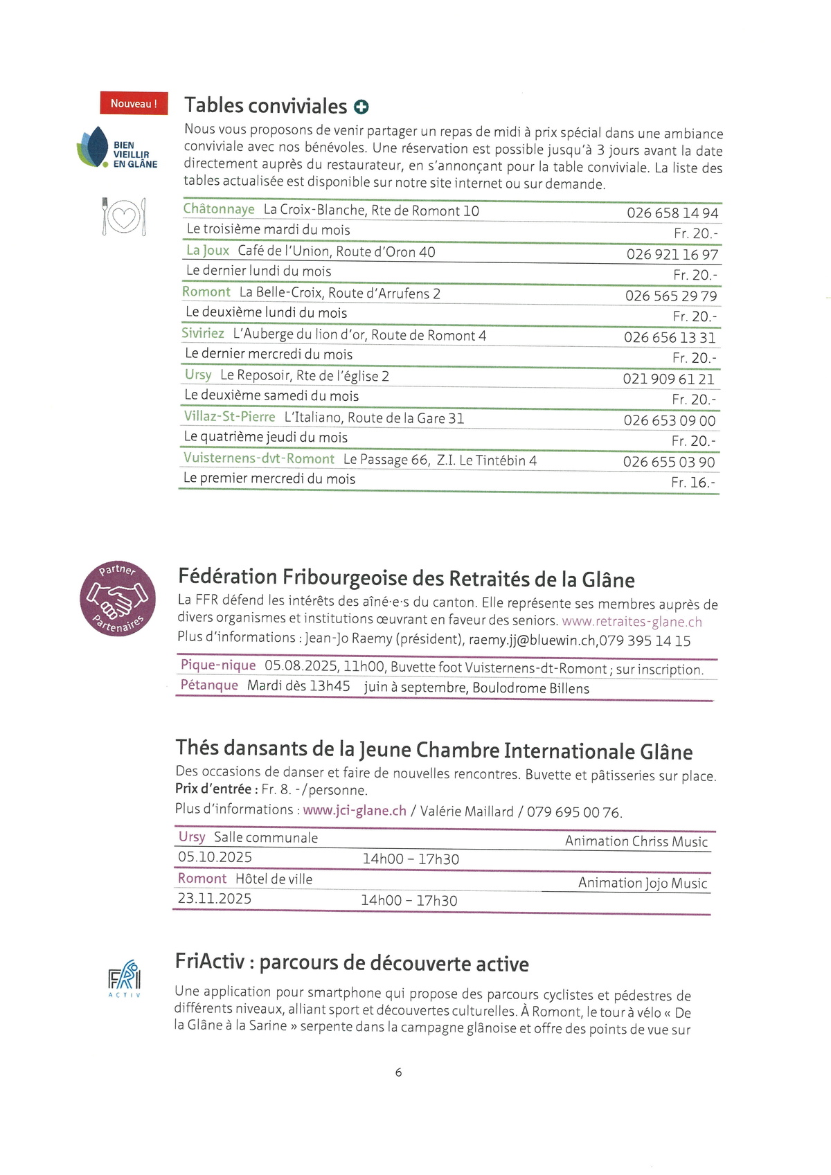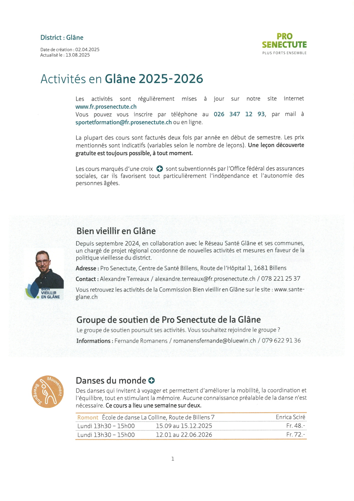 / Activités en Glâne 2025 - 2026 par Pro Senectute Fribourg