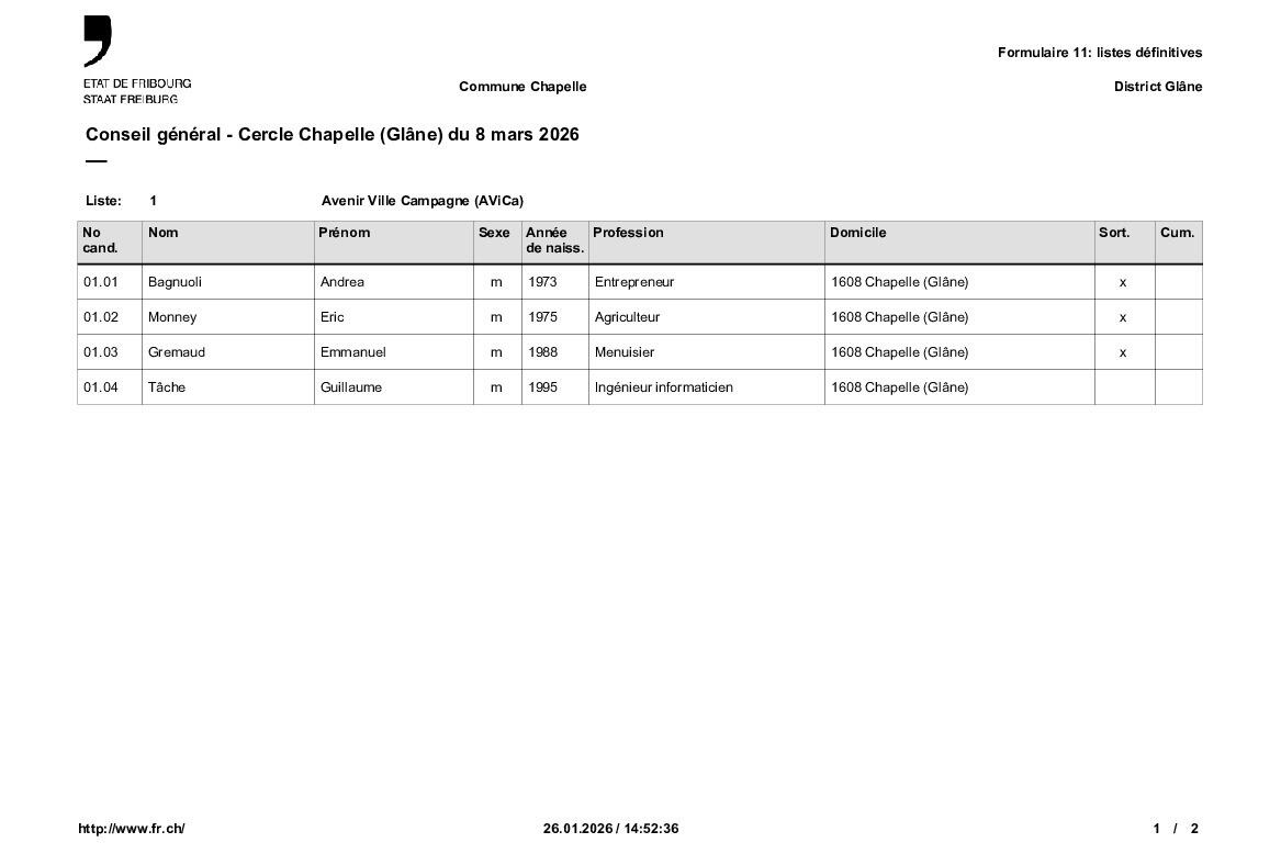 Nous avons le plaisir de vous présenter les candidats aux élections du Conseil général pour les 4 cercles électoraux de notre Commune.