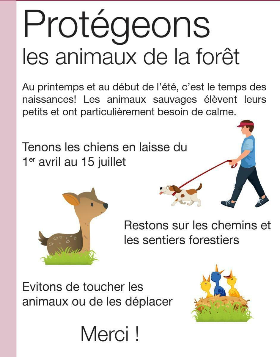 Afin d'éviter des cas de prédation et de dérangement de la faune sauvage, le Service des forêts et de la nature rappelle aux détentrices et détenteurs de chiens, l'obligation de tenir leur animal en laisse en forêt du 1er avril au 15 juillet.