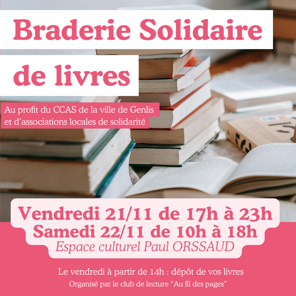 📅 VEN 21/11 ET SAM 22/11 - ESPACE CULTUREL : Braderie Solidaire de livres par Au Fil des pages