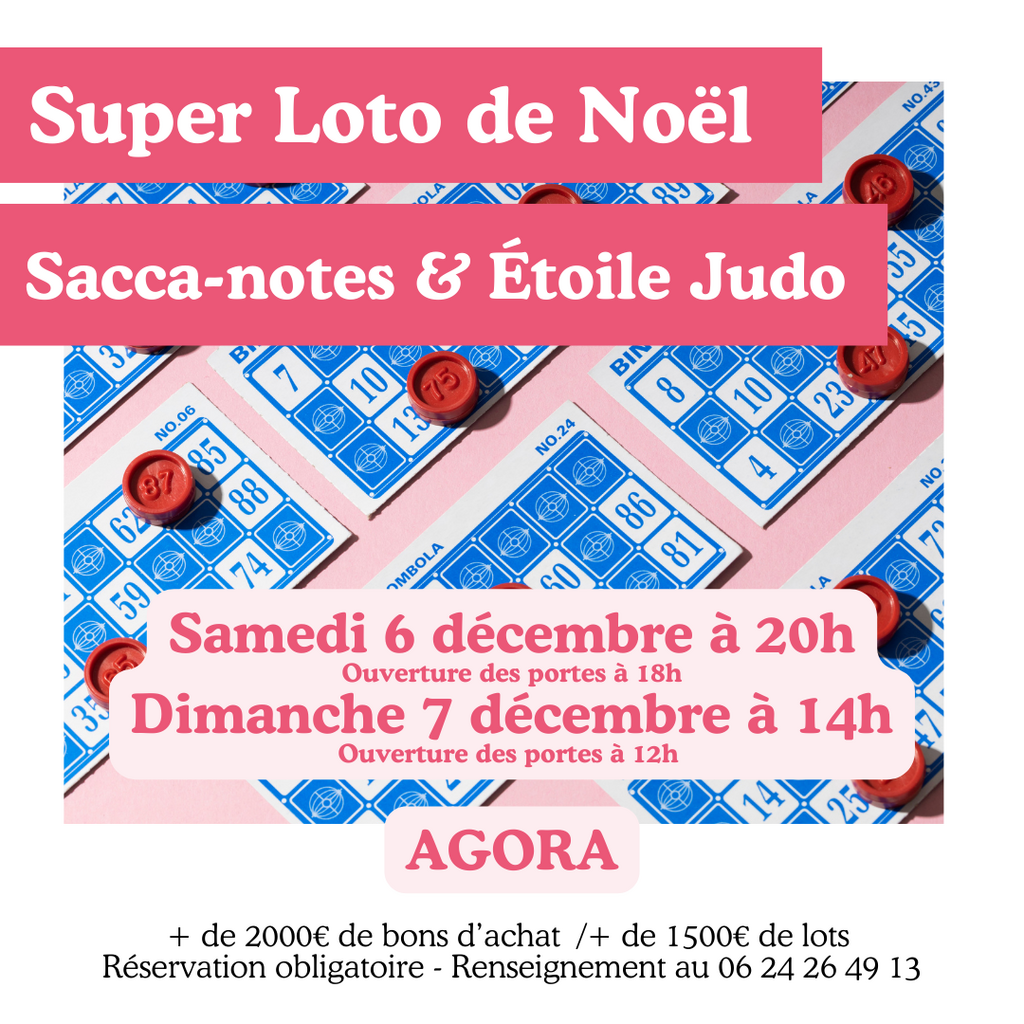 📅 SAM 06/12 à 20H et DIM 07/12 à 14h - AGORA : Super Loto de Noël de Sacca-Notes et Étoile Judo Genlis