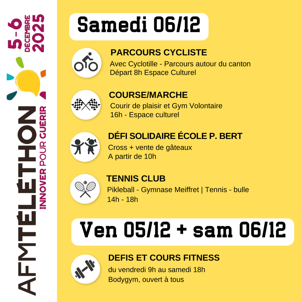 📅 VEN 05/12 et SAM 06/12 - TÉLÉTHON ASSO : défis sportifs dans nos associations