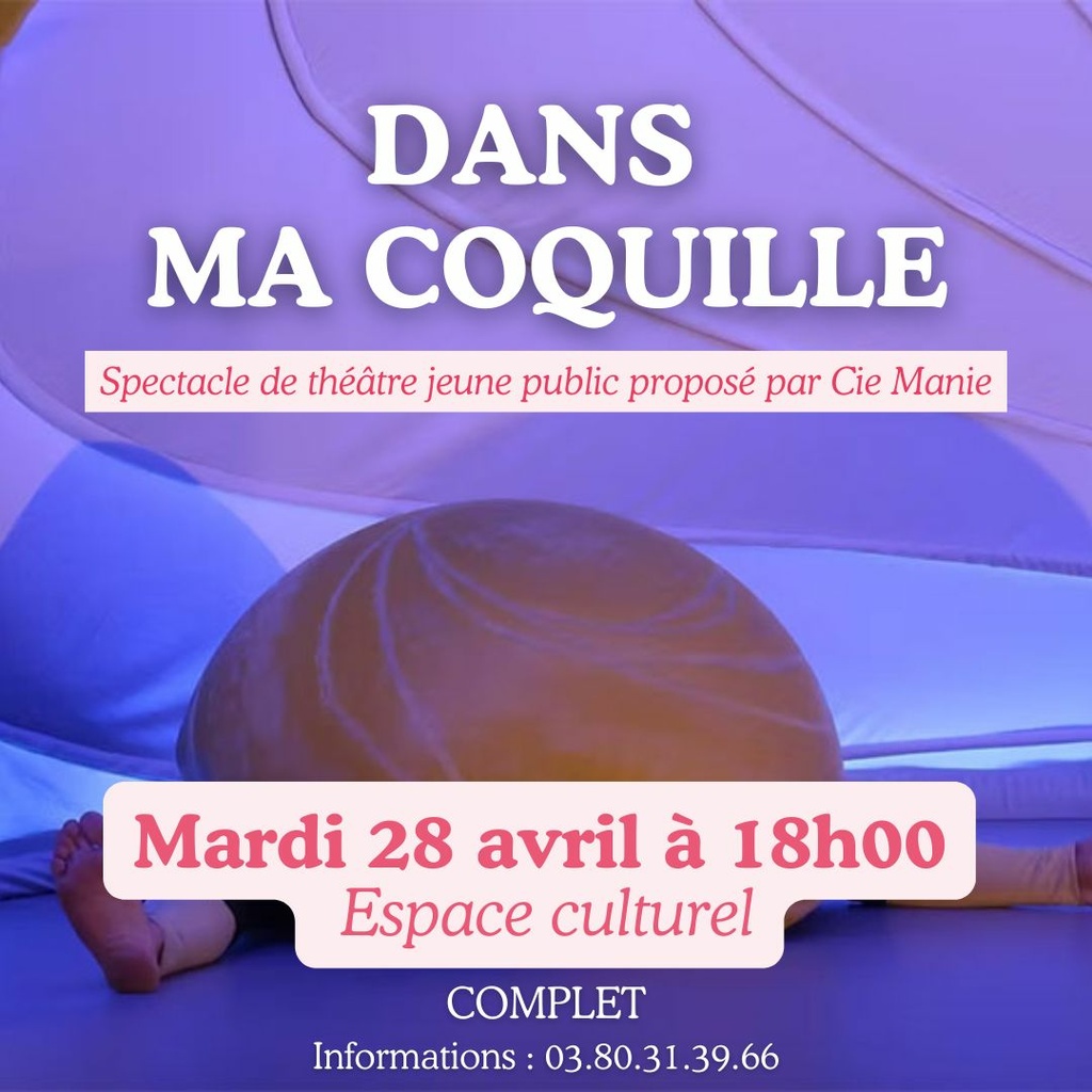 📅 MAR 28/04 à 18h - ESPACE CULTUREL : Spectacle jeune public : "Dans ma coquille"