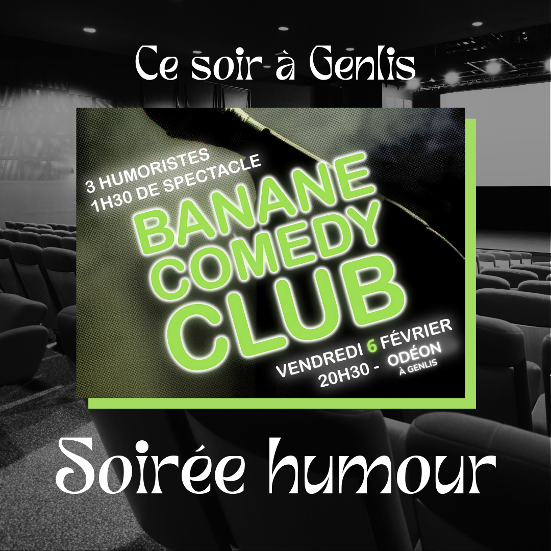 Ce Soir À Genlis : Soirée Humour 🎤 06/02/2026 Prêts pour une soirée de rire et de bonne humeur ? Rendez-vous dès 20h à l'Odéon avec La Banane de Dijon ! Toutes les infos : https://www.genlis.fr/evenements/soiree-humour/