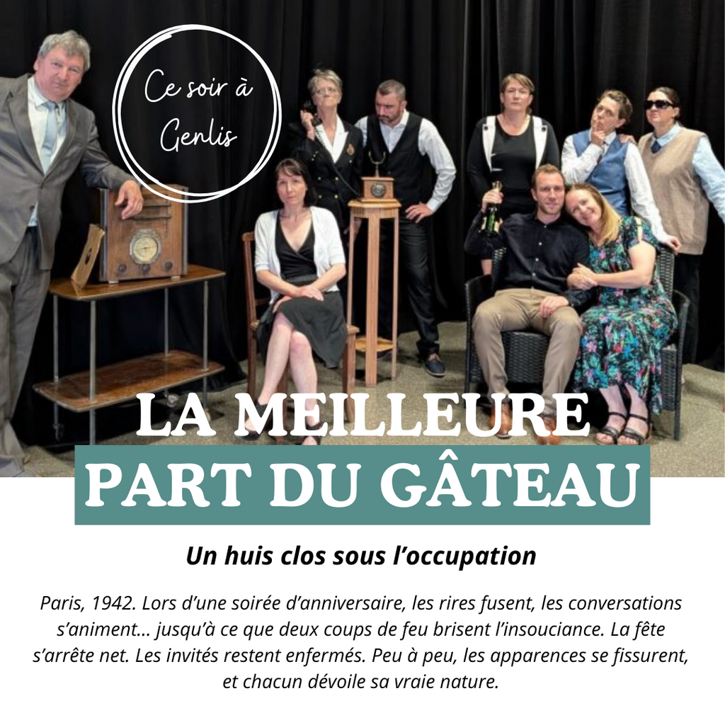 Ce Soir À Genlis : Théâtre 🎭 27/02/2026 Un huis clos sous l’occupation - entre rires et tension. Rendez-vous dès 20h à l'Odéon avec la compagnie ZigZag. 👉 Infos et billetterie : https://www.genlis.fr/evenements/la-meilleure-part-du-gateau