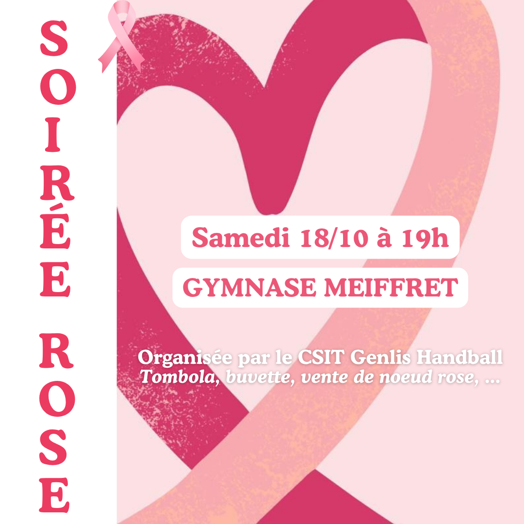 📅 SAM 18/10 - GYMNASE MEIFFRET à 19h : Soirée Rose organisée par le CSIT Genlis