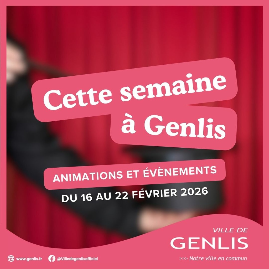 Cette Semaine À Genlis : Du 16 Au 22 Février🌟 16/02/2026 Les vacances continuent avec différentes activités : parc Jumble, cinéma Odéon, sans oublier la médiathèque ! 👉 Tout le programme du cinéma : https://www.genlis.fr/mes-activites/cinema/ 👉 Le détail des événements municipaux et associatifs : https://www.genlis.fr/evenements/