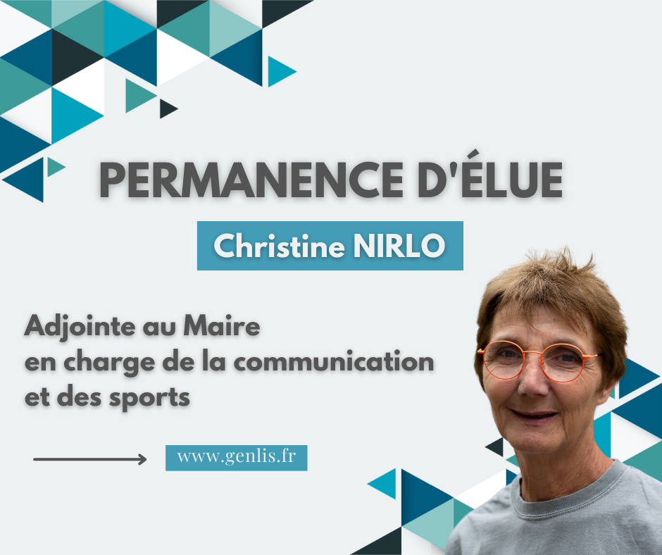 I Permanence Elus I 13/02/2026 Ce samedi 14 février de 9h à 12h, la permanence hebdomadaire sera tenue par Christine Nirlo. 👉 Toutes les informations sur le Conseil Municipal de Genlis : https://www.genlis.fr/conseil-municipal/