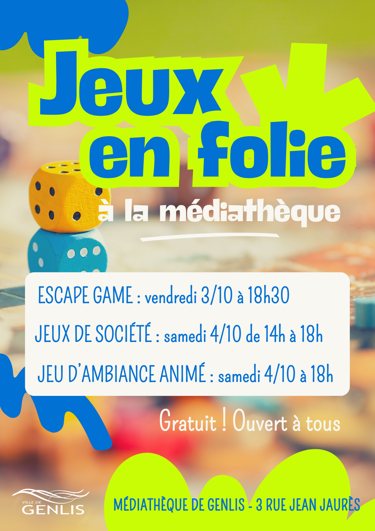 Dans le cadre de la journée nationale « Biblis en folie » initiée par le Ministère de la Culture, la médiathèque vous invite à deux jours d’animations autour du jeu. Venez découvrir, tester et vous amuser en famille ou entre amis.