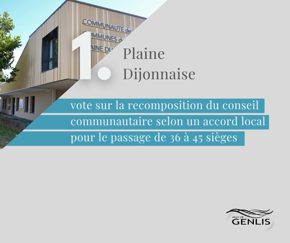 ✅ Plaine Dijonnaise : vote sur la recomposition du conseil communautaire selon un accord local pour le passage de 36 à 45 sièges