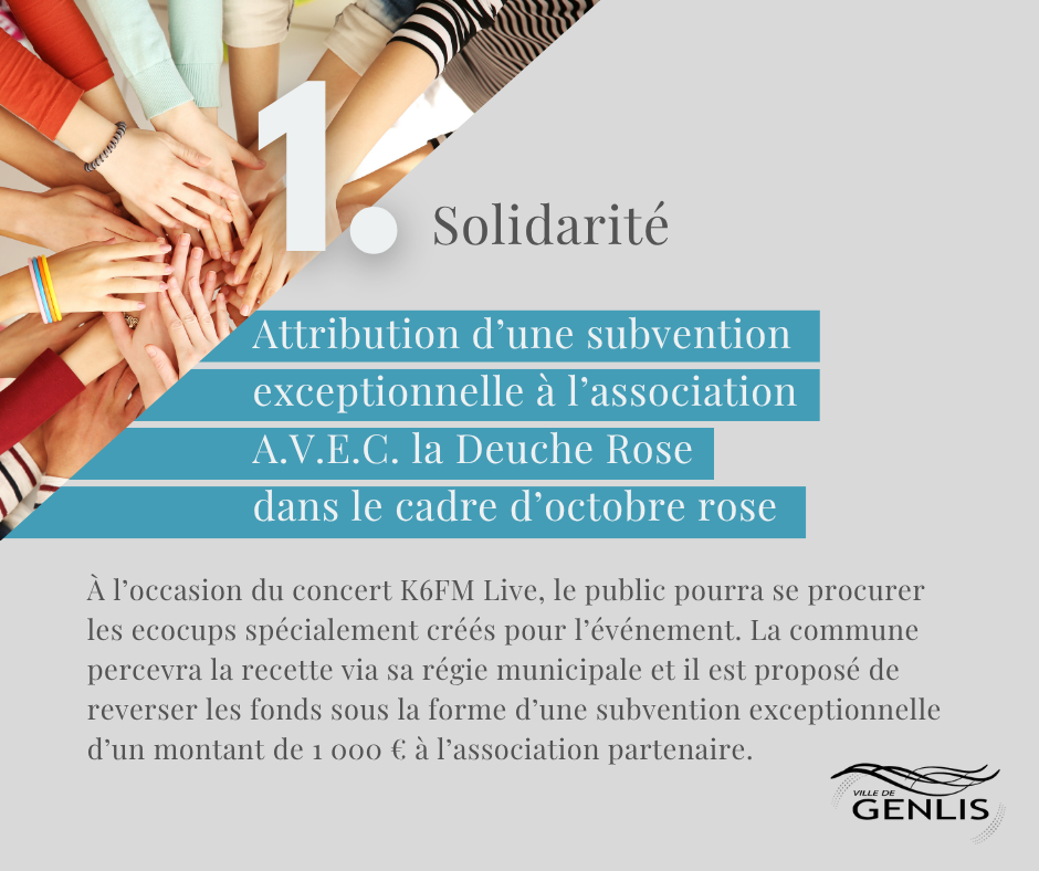 ✅ Attribution d’une subvention exceptionnelle à l’association A.V.E.C. la Deuche Rose dans le cadre d’octobre rose