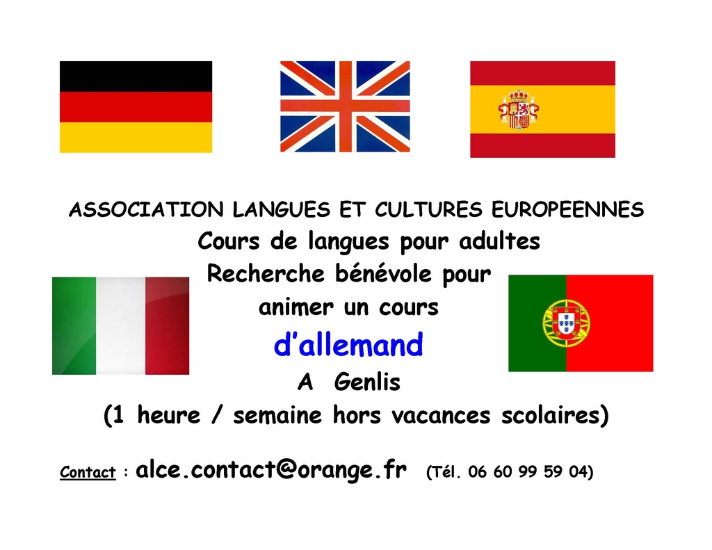 L'association Langues et cultures européennes recherche un bénévole pour animer des cours d'allemand pour adultes.