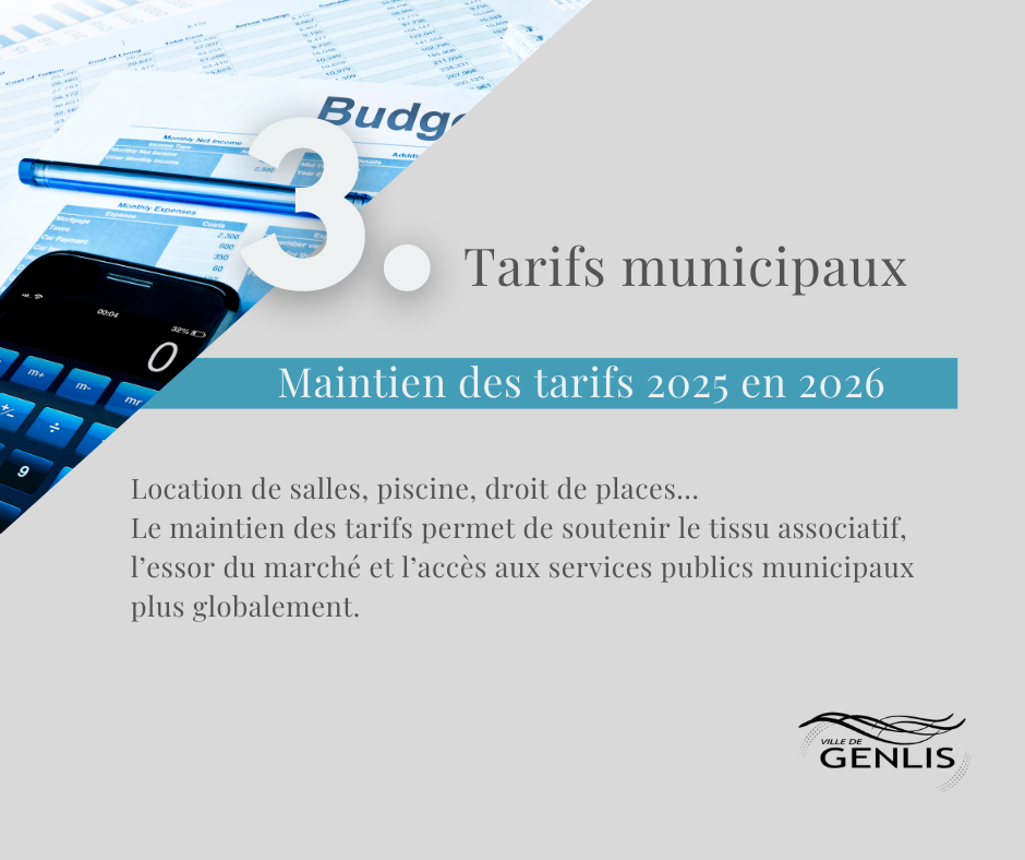 ✅ Tarifs municipaux : maintien des tarifs 2025 en 2026 (location de salles, piscine, droit de places…)