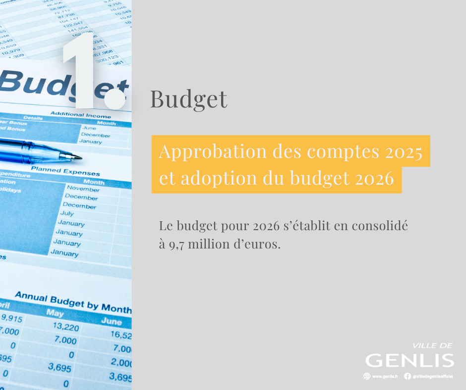 ✅ Budget : approbation des comptes 2025 et adoption du budget pour 2026 qui s’établit en consolidé à 9,7 M€