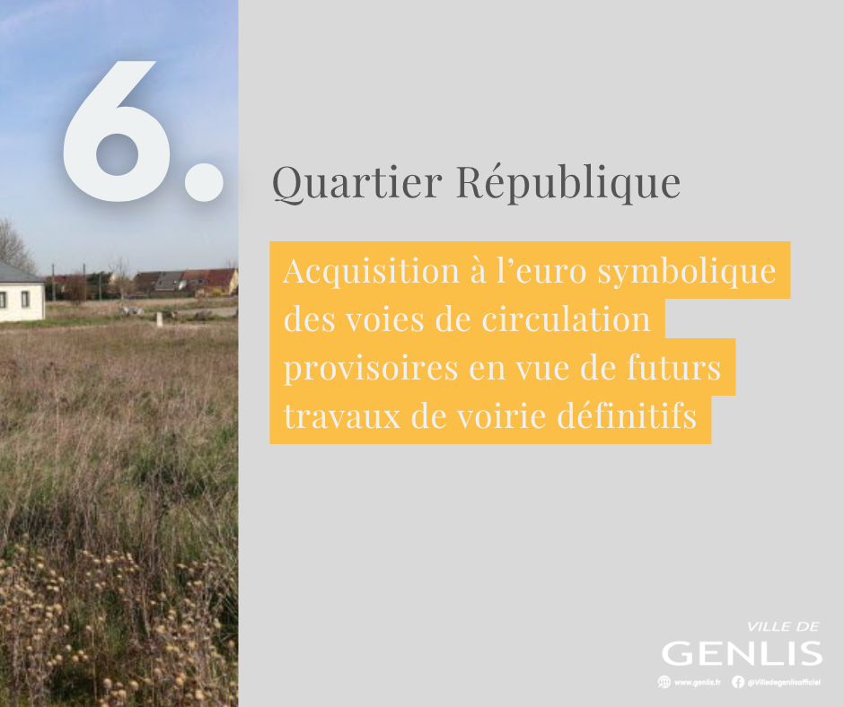✅ Quartier République : acquisition à l’euro symbolique des voies de circulation provisoires en vue de futurs travaux de voirie définitifs