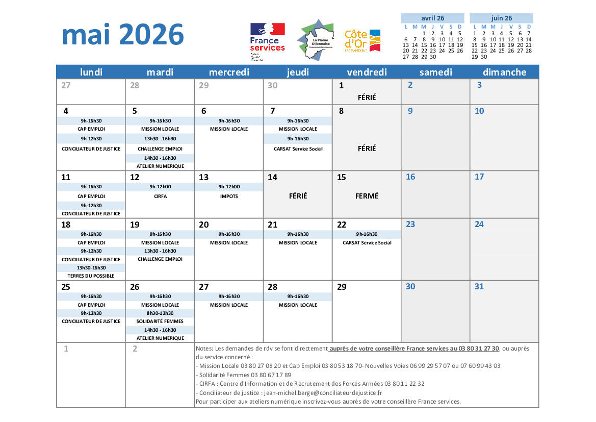 i️ Information et planning France Services 2026📆