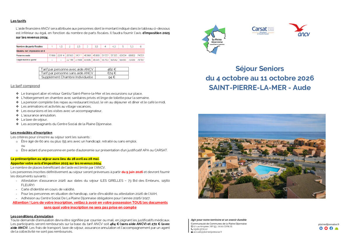 Séjour seniors 2026 - Centre Social de la Plaine Dijonnaise