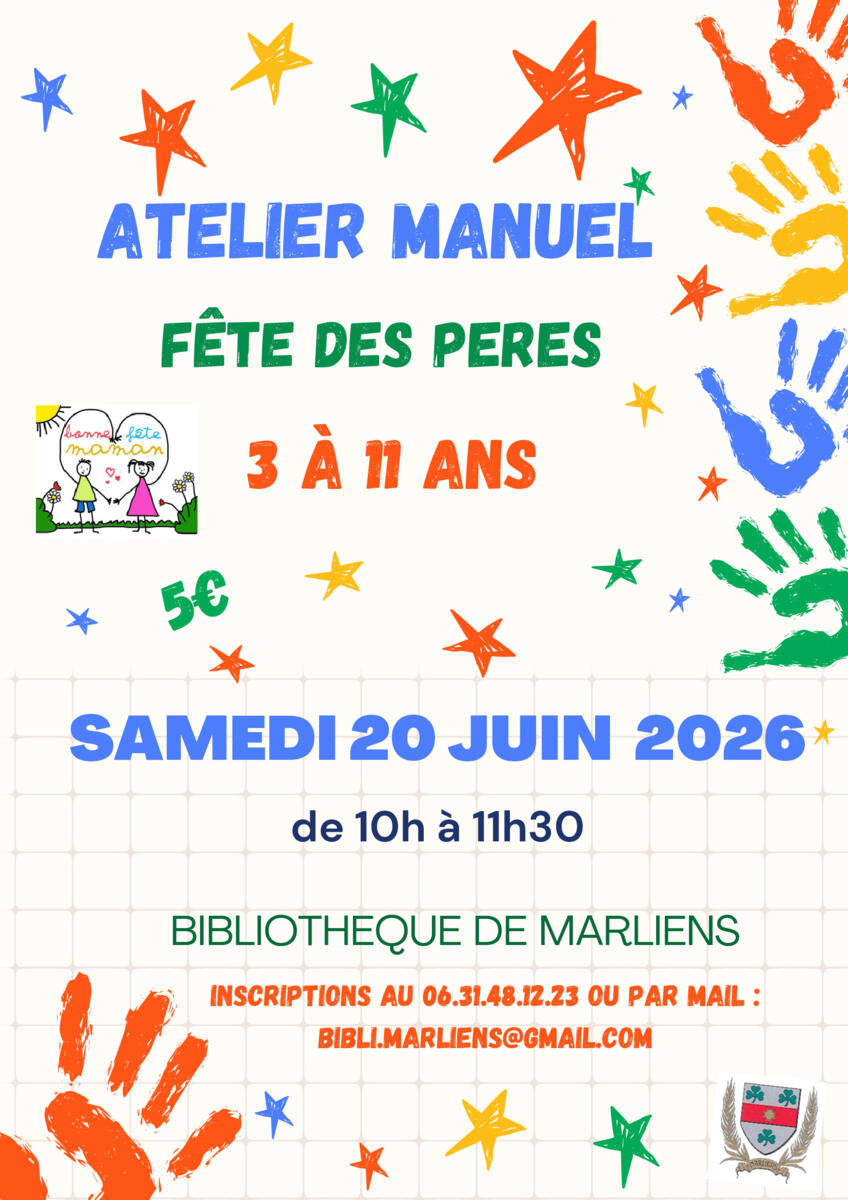 La bibliothèque de Marliens a le plaisir de proposer un atelier créatif à destination des enfants à l’occasion de la Fête des Pères