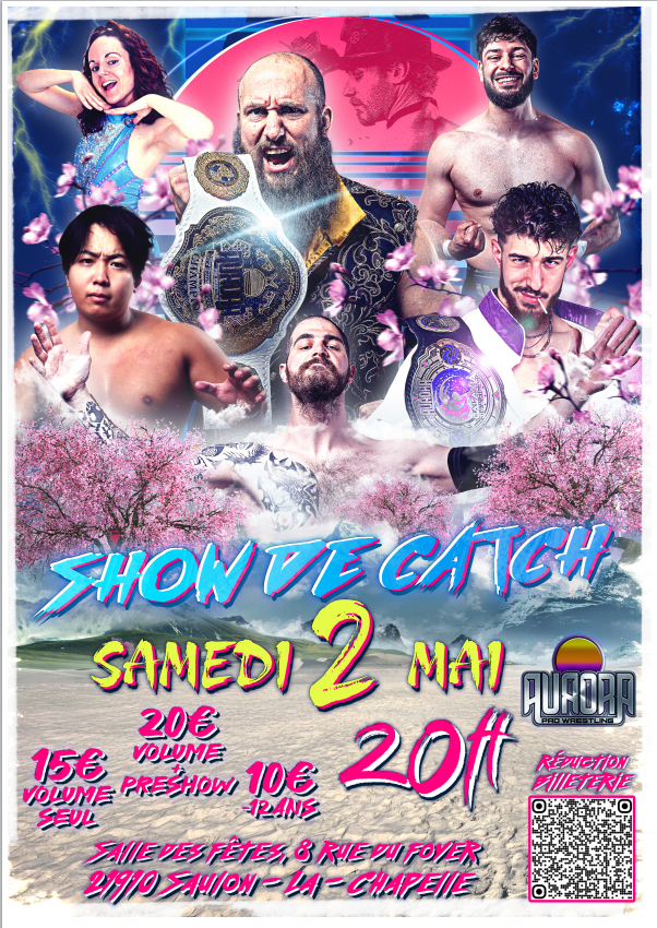 Sport : Show De Catch 25/04/2026 Aurora revient pour son 8e volume "Le code du Bushido" ! Venez profiter du spectacle : SAMEDI 2 MAI dès 20h à la salle des fêtes. (Cliquez sur le flyer pour en savoir plus)