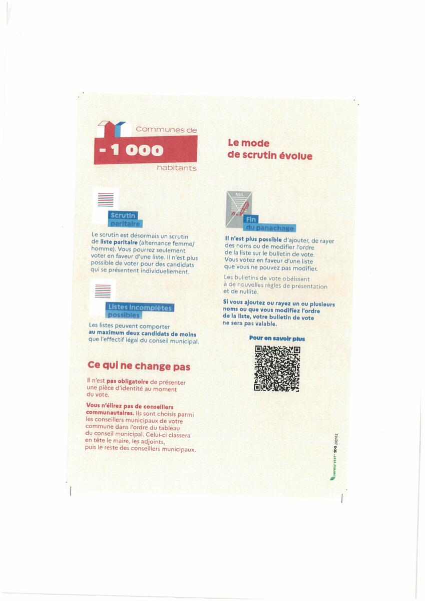 Désormais, pour les communes de - de 1000 habitants, le mode de scrutin évolue et passe au scrutin de liste paritaire.