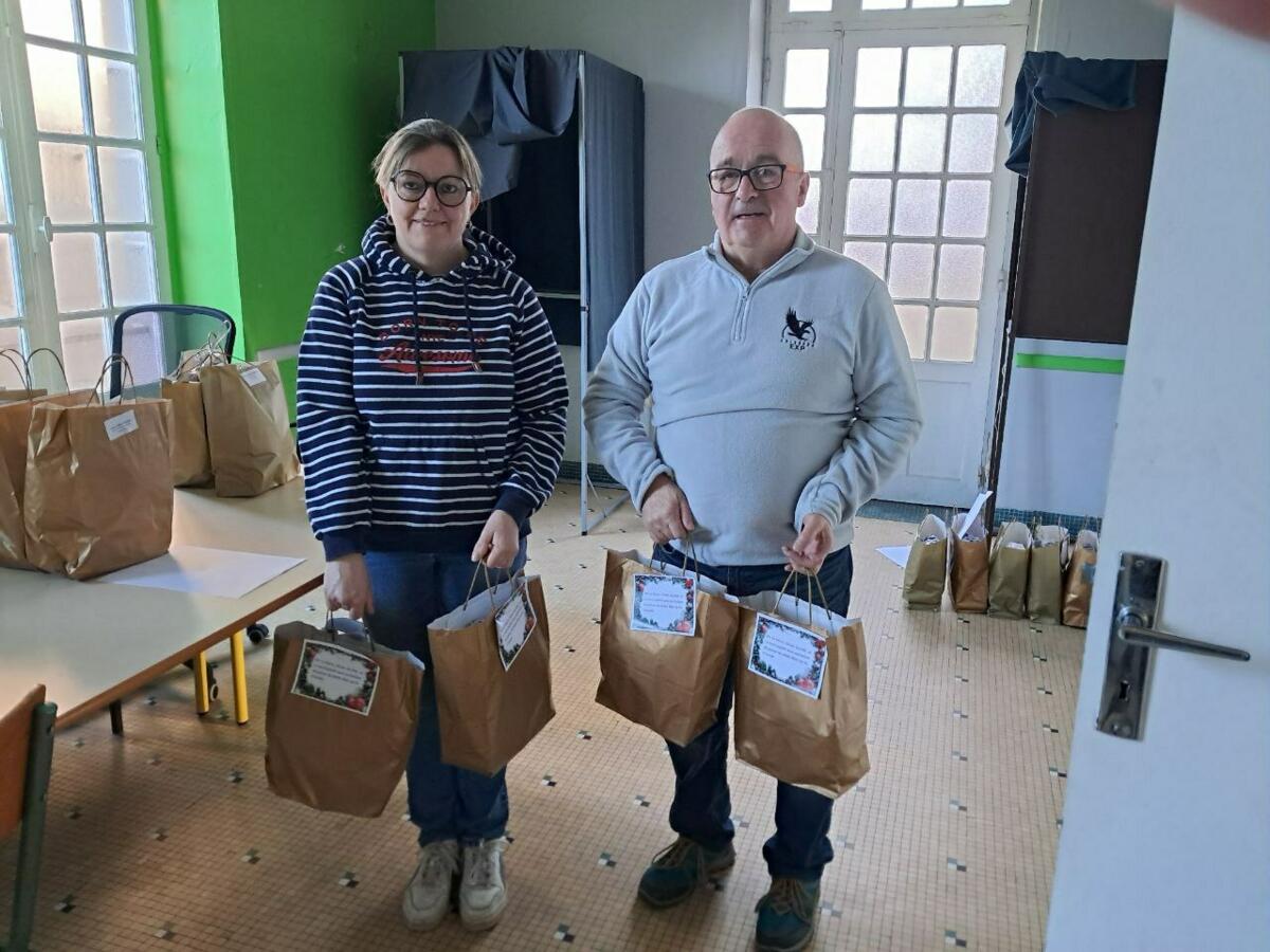🎄🤶🎁Ces colis contiennent des petites douceurs venant de Carrefour express et Votre Marché. 110 colis ont été préparés. Si vous avez plus de 80 ans et que vous n’êtes pas inscrits sur la liste électorale, venez en mairie, vous aurez un colis et vous serez inscrits pour les années suivantes.
