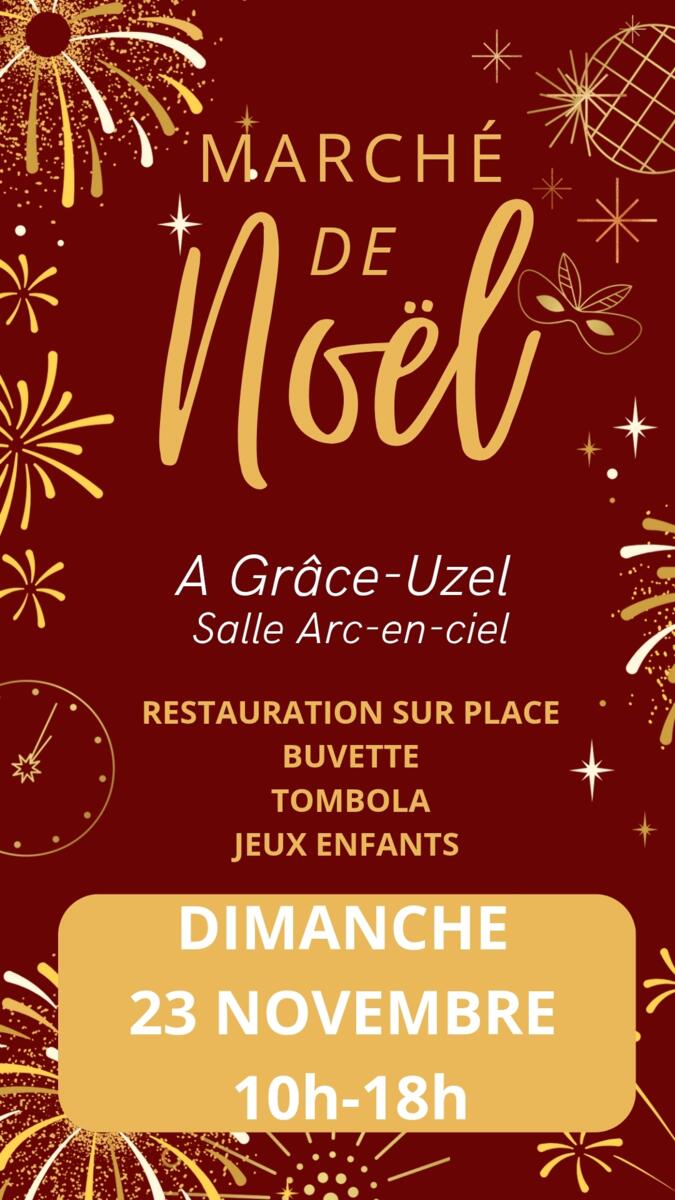 Marché De Noël À Grâce Uzel 13/11/2025 Rendez vous le dimanche 23 novembre à la salle arc en ciel de Grâce uzel Présence du père Noël Jeux en bois pour enfants tombola buvette et aligot saucisse
