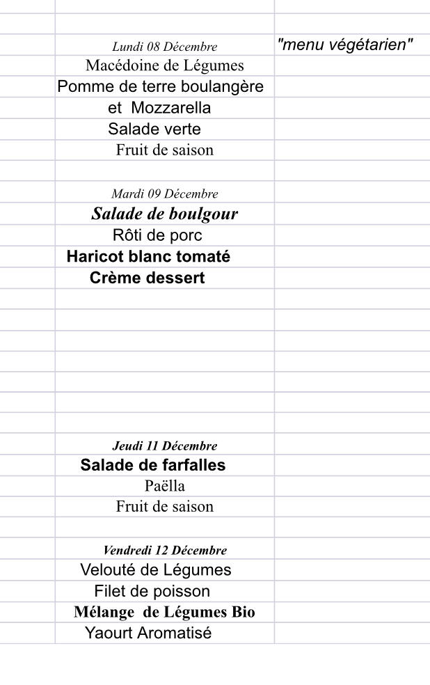Menus du 8 au 12 décembre