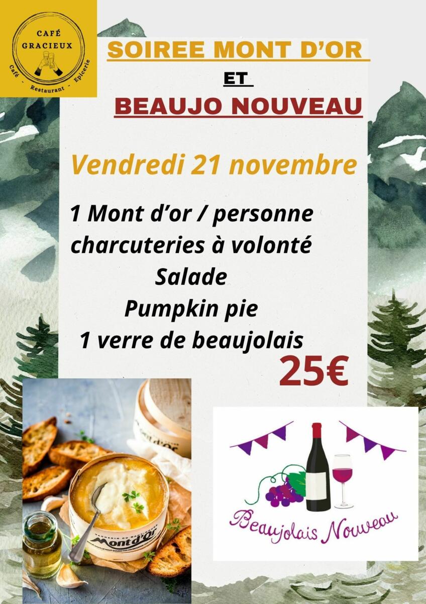 Soirée Mont D’or Et Beaujolais Au Café Grâcieux 08/11/2025 Soirée M'ont d’Or et beaujolais nouveau 🧀🍷 On vous attend nombreux vendredi 21 novembre pour une soirée essentielle de l’hiver : du vin et du fromage fondu 🤗🤪