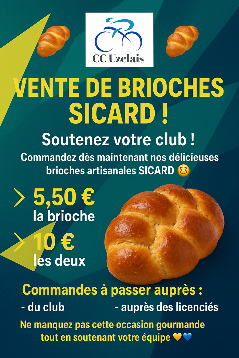 Vente De Brioches 16/11/2025 Le CCU 🚴🏻🚴🏼♀️🚴🏻♂️ vous propose ses traditionnelles brioches de marque SICARD. Commande possible auprès des licenciés du club ou au 06.77.93.18.41