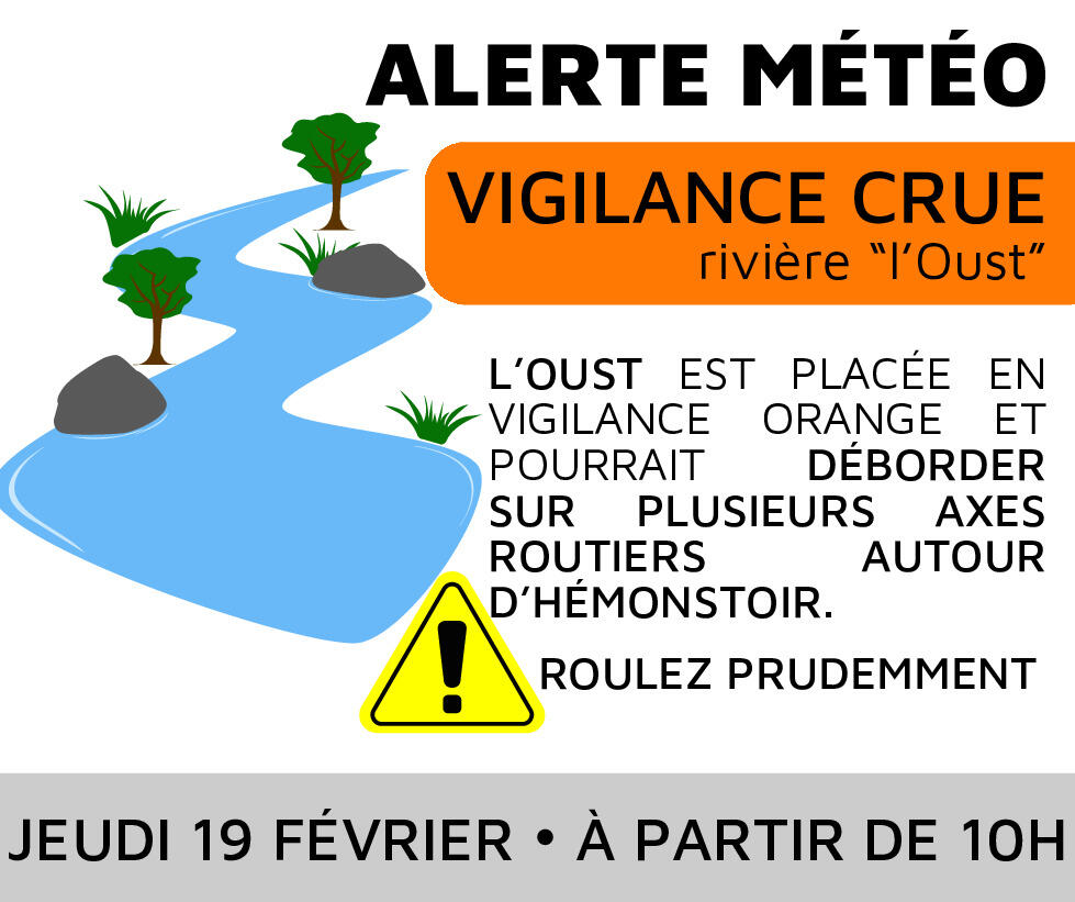 🟠 VIGILANCE MÉTÉO - CRUE DE L'OUST