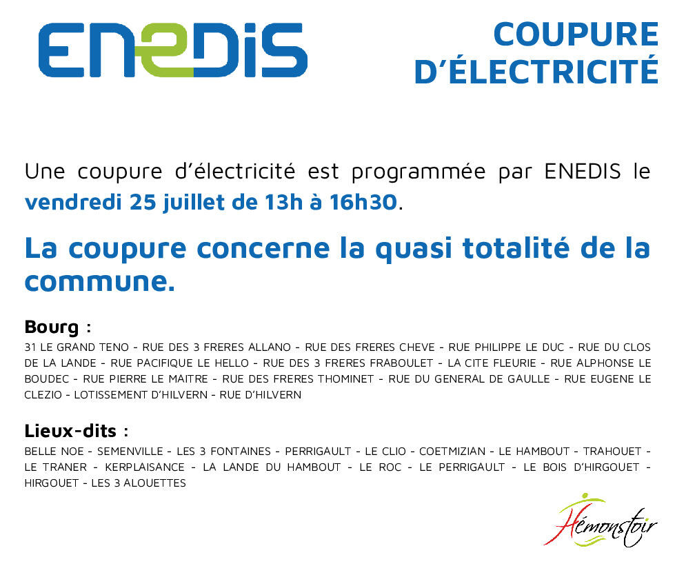 🔌 Coupure d'Ă©lectricitĂ© - 25 juillet 2025