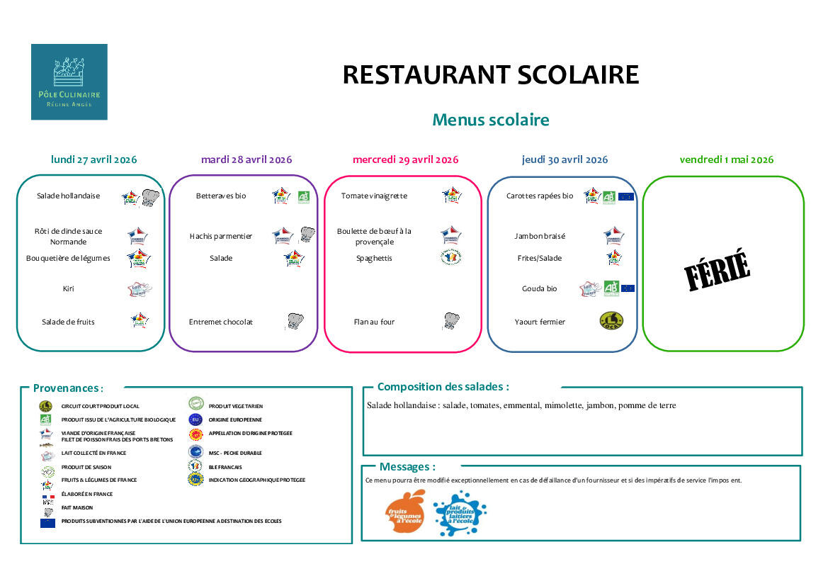 Menu du restaurant scolaire du 27 au 30 avril 2026 🍽️