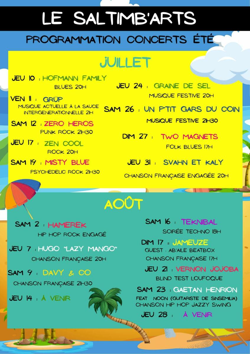 En plus des marchés de producteurs locaux d’été du jeudi soir , le Le Saltimb'Arts vous propose une programmation musicale tout au long de la saison !