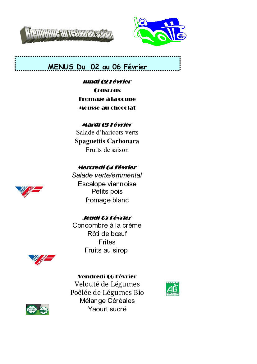 Votre mairie / Actualités / Menus du restaurant scolaire
