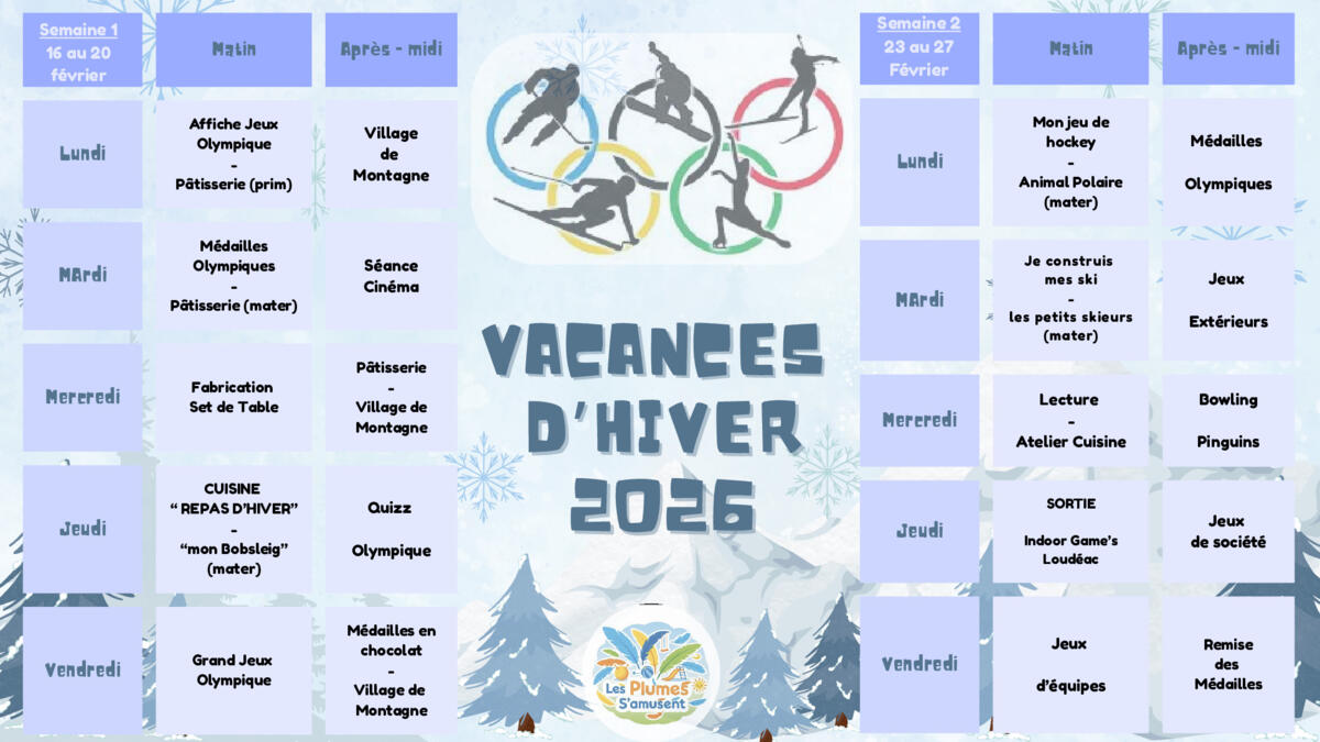 L’accueil de loisirs « Les plument s'amusent » est heureux de vous présenter le programme des vacances d’hiver 2026 👇