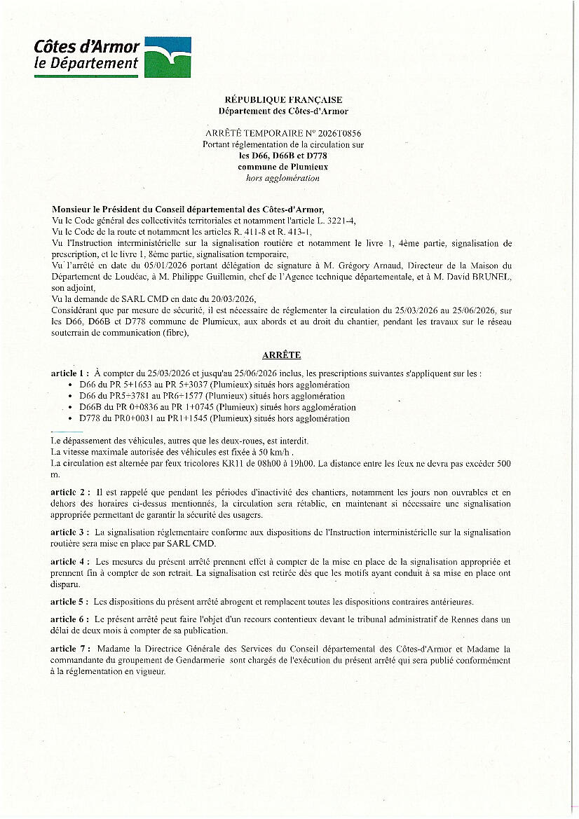 Arrêté de circulation n° 2026T0856 - D66, D66B et D77 23/03/2026 Circulation alternée et limitation de vitesse 👇
