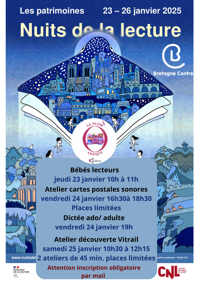 Les Nuits de la Lecture auront lieu à la fin du mois, du jeudi 23 au dimanche 26 janvier dans toute la France et nous vous avons concocté un beau programme du jeudi au samedi grâce au Réseau des Bibliothèques de Loudéac Communauté !